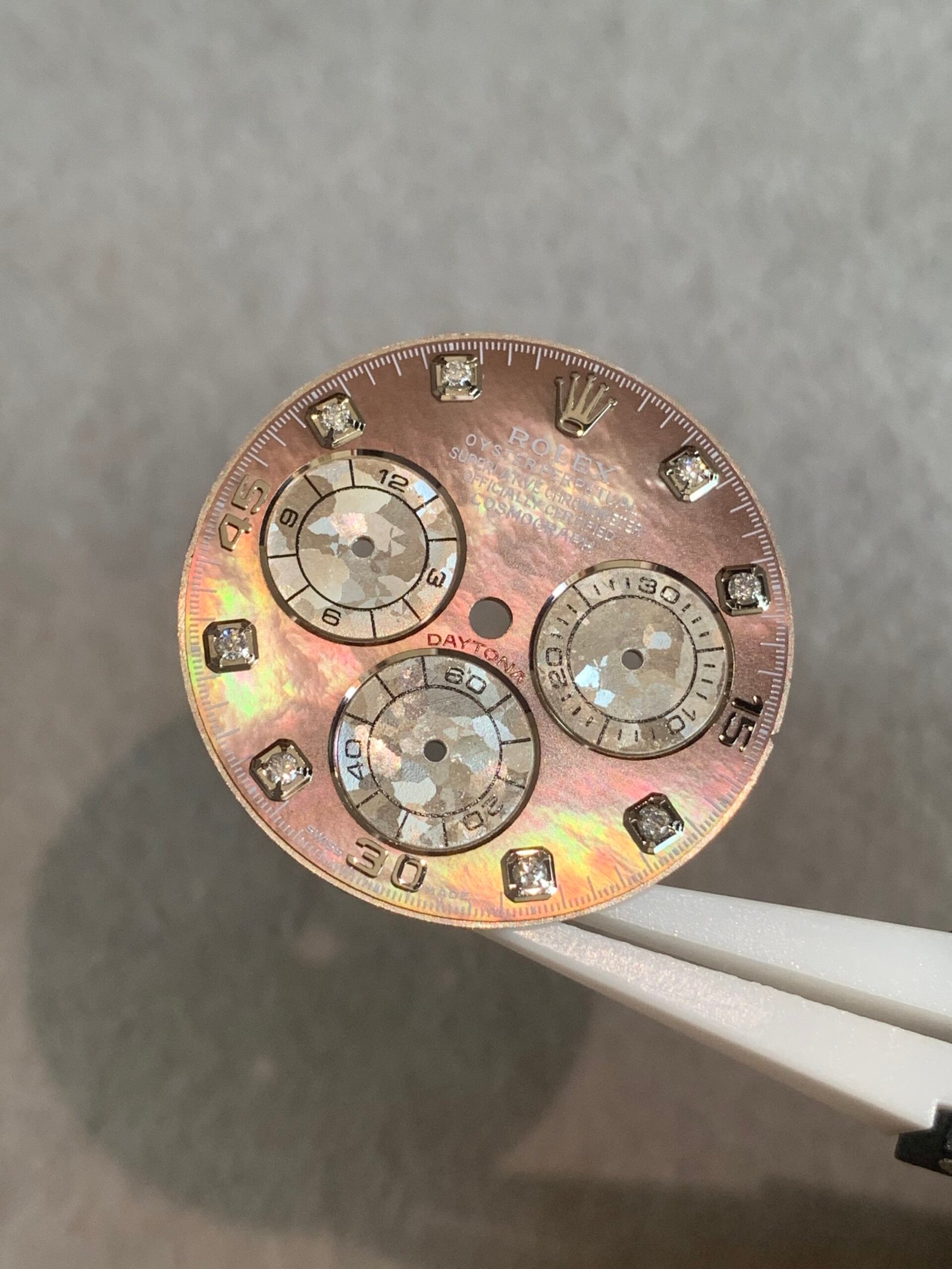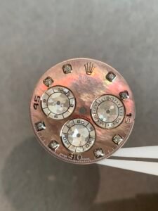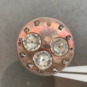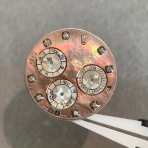 Be the first to review “Daytona Tahitian mother-of-pearl dial, three-eye flower design, with moissanite scale, suitable for 4130/4131 movement”