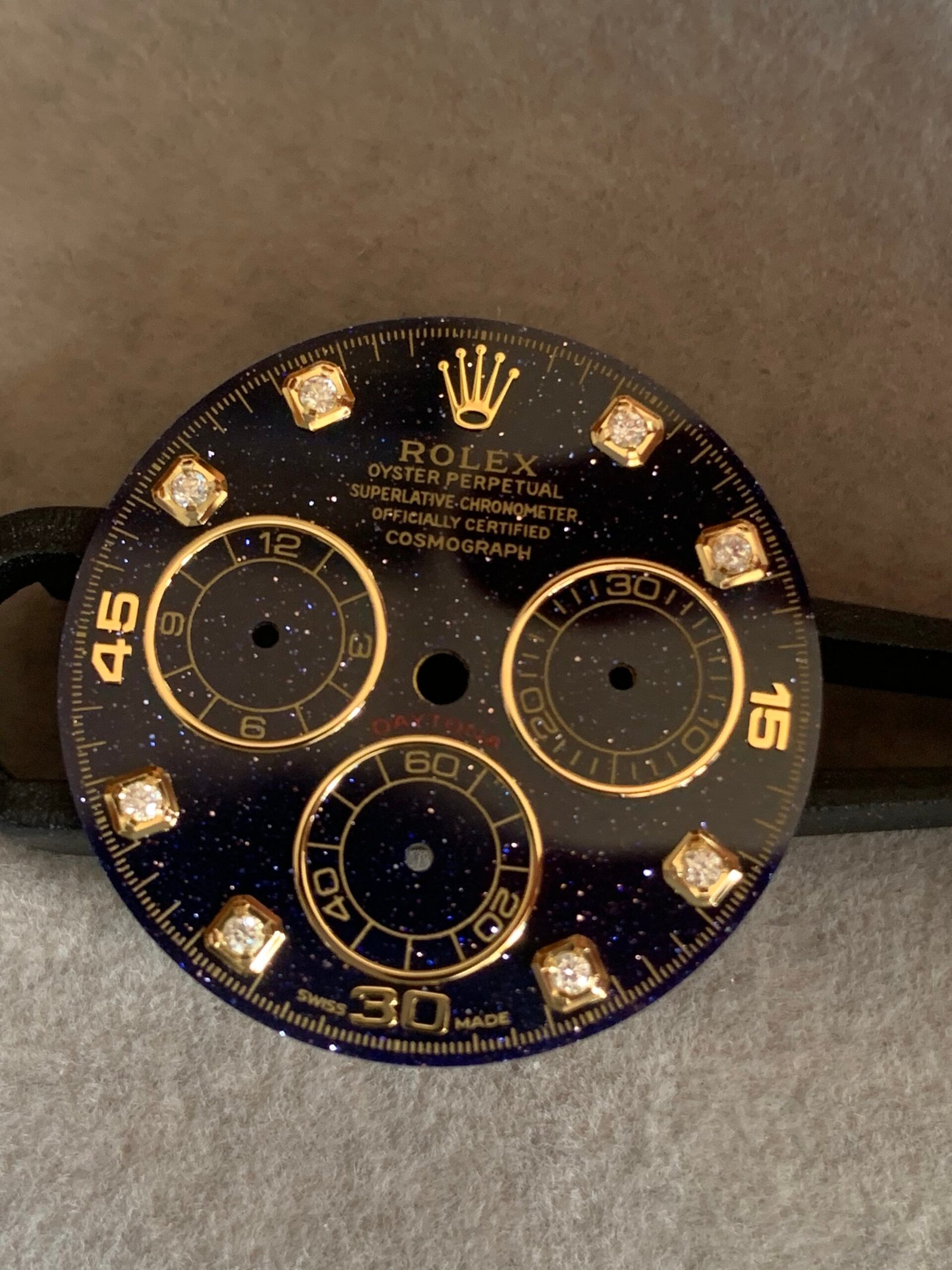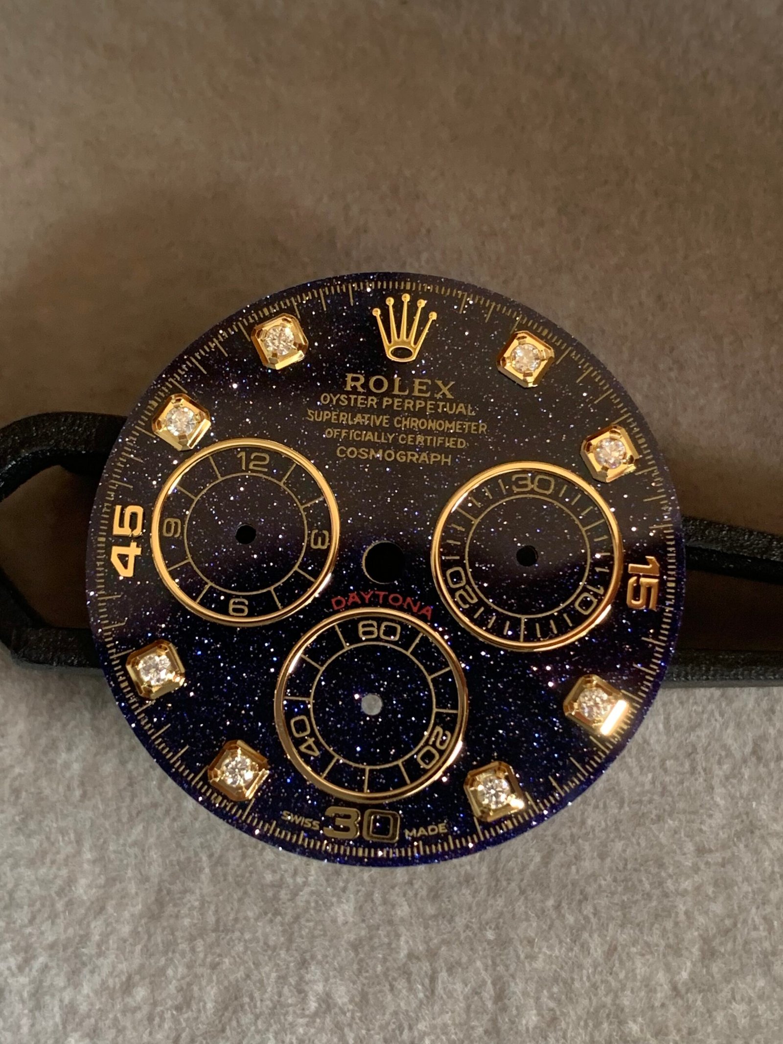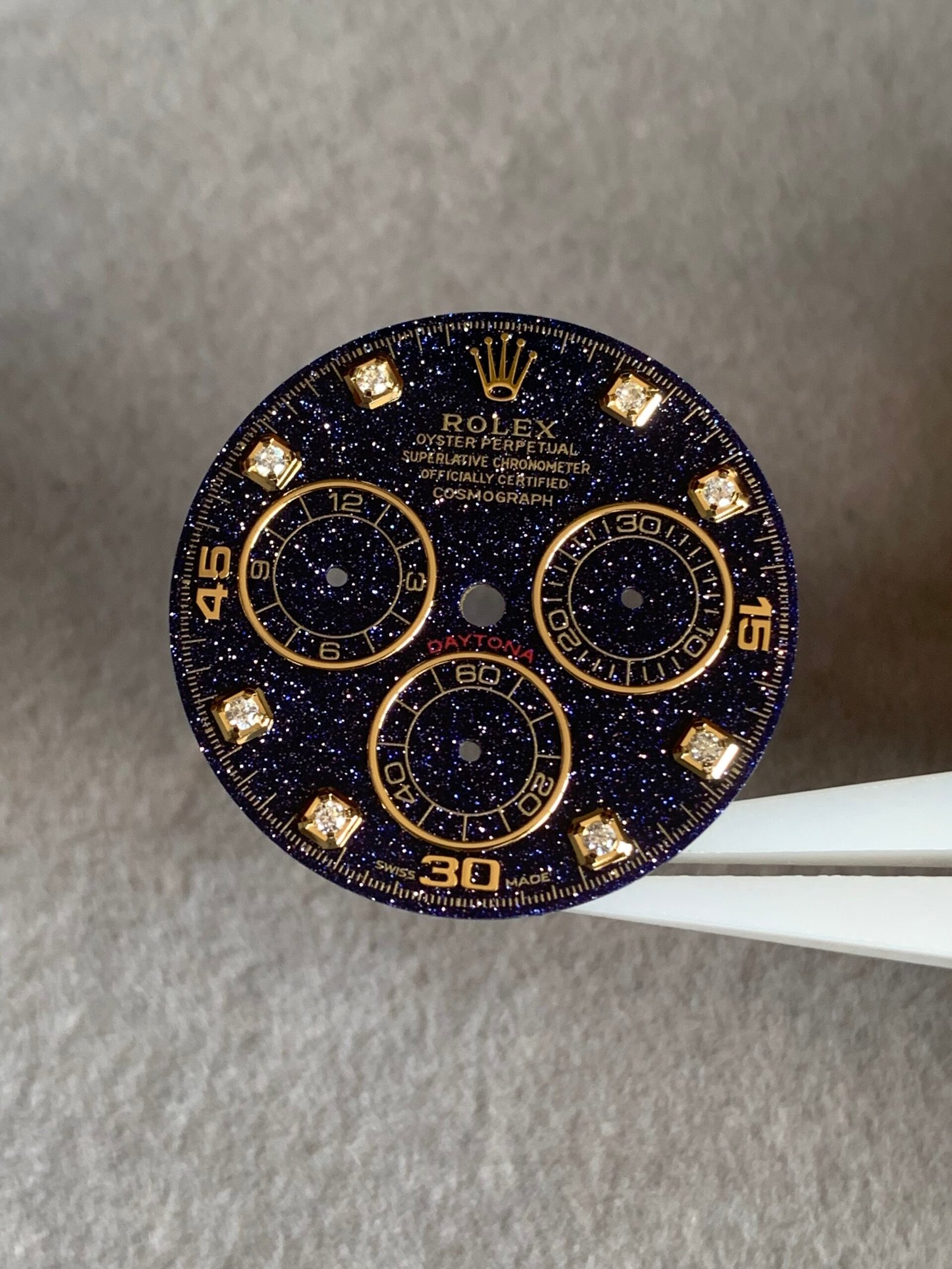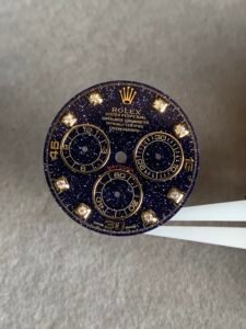 劳力士迪通拿蓝金砂星空表盘,搭配金色夜光刻度,超级漂亮!