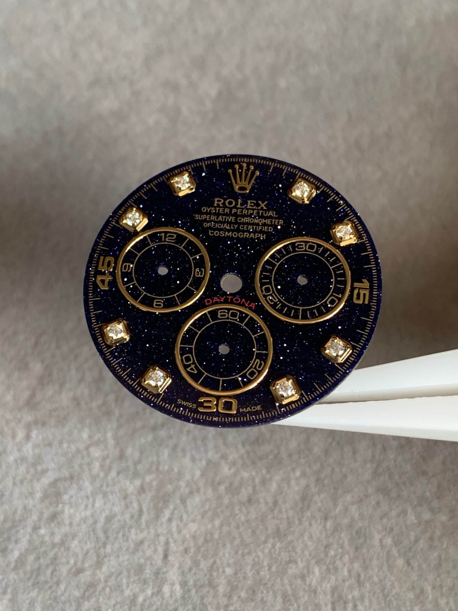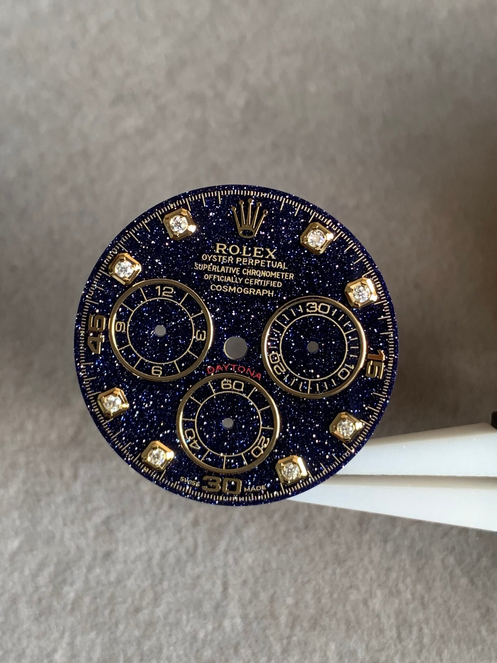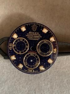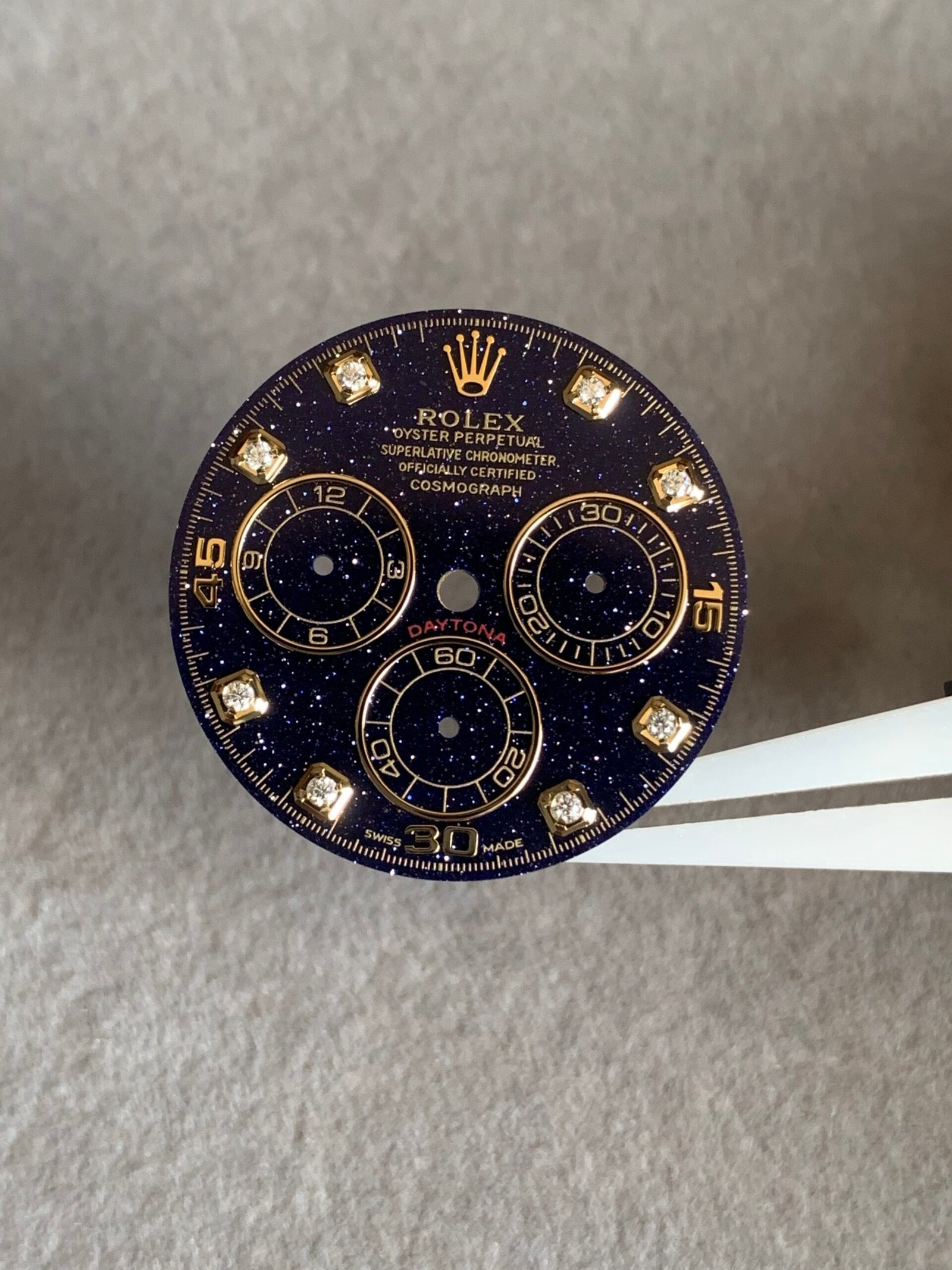 劳力士迪通拿蓝金砂星空表盘,搭配金色夜光刻度,超级漂亮!