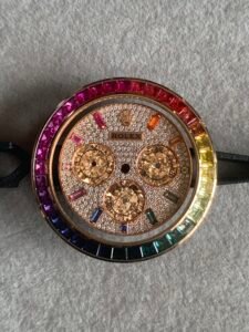 Rolex Rainbow Daytona Dial Set, Inlaid Rainbow Gemstone Bezel, Moissanite Dial, Hand-Inlaid 4130 Movement