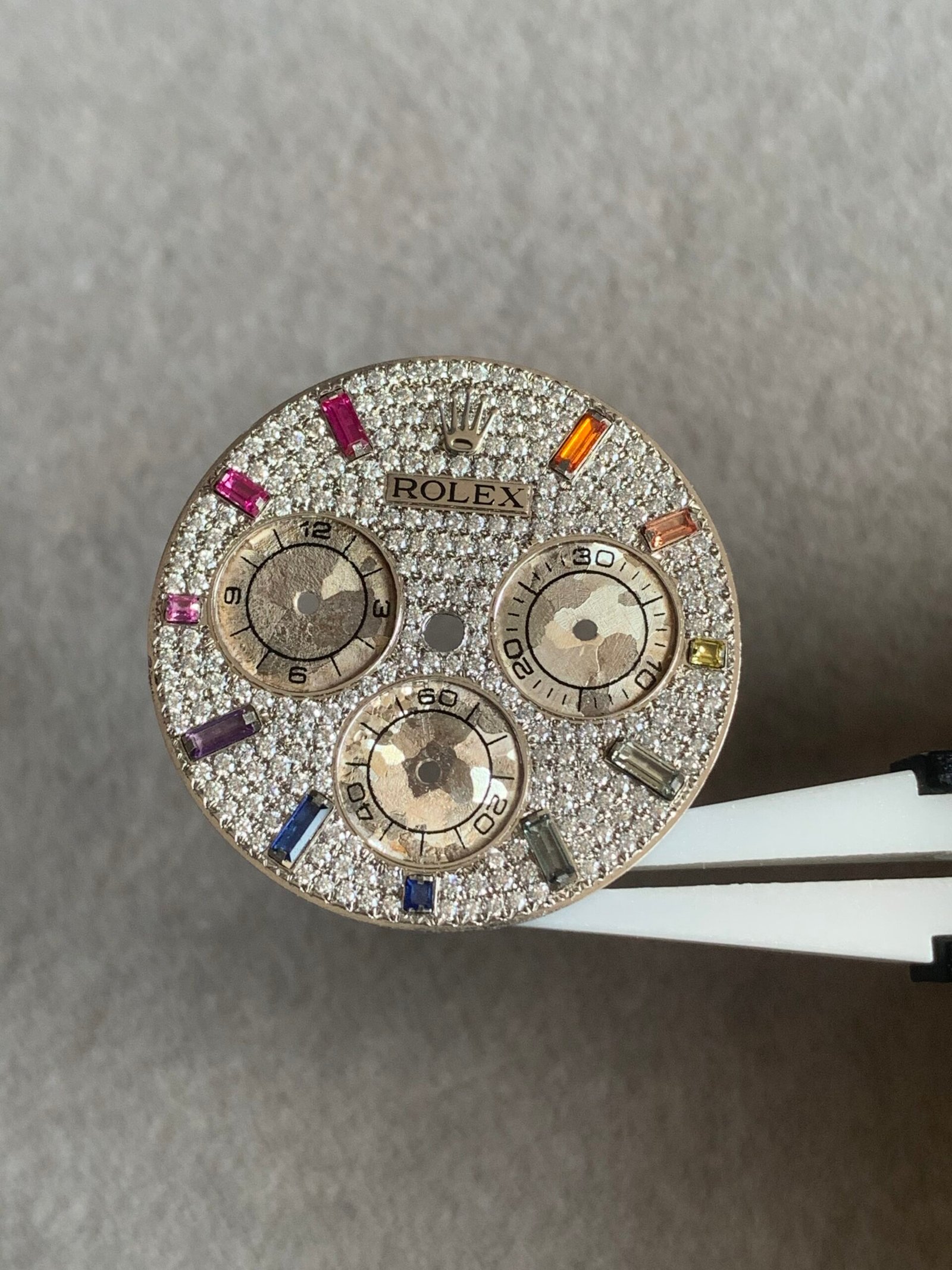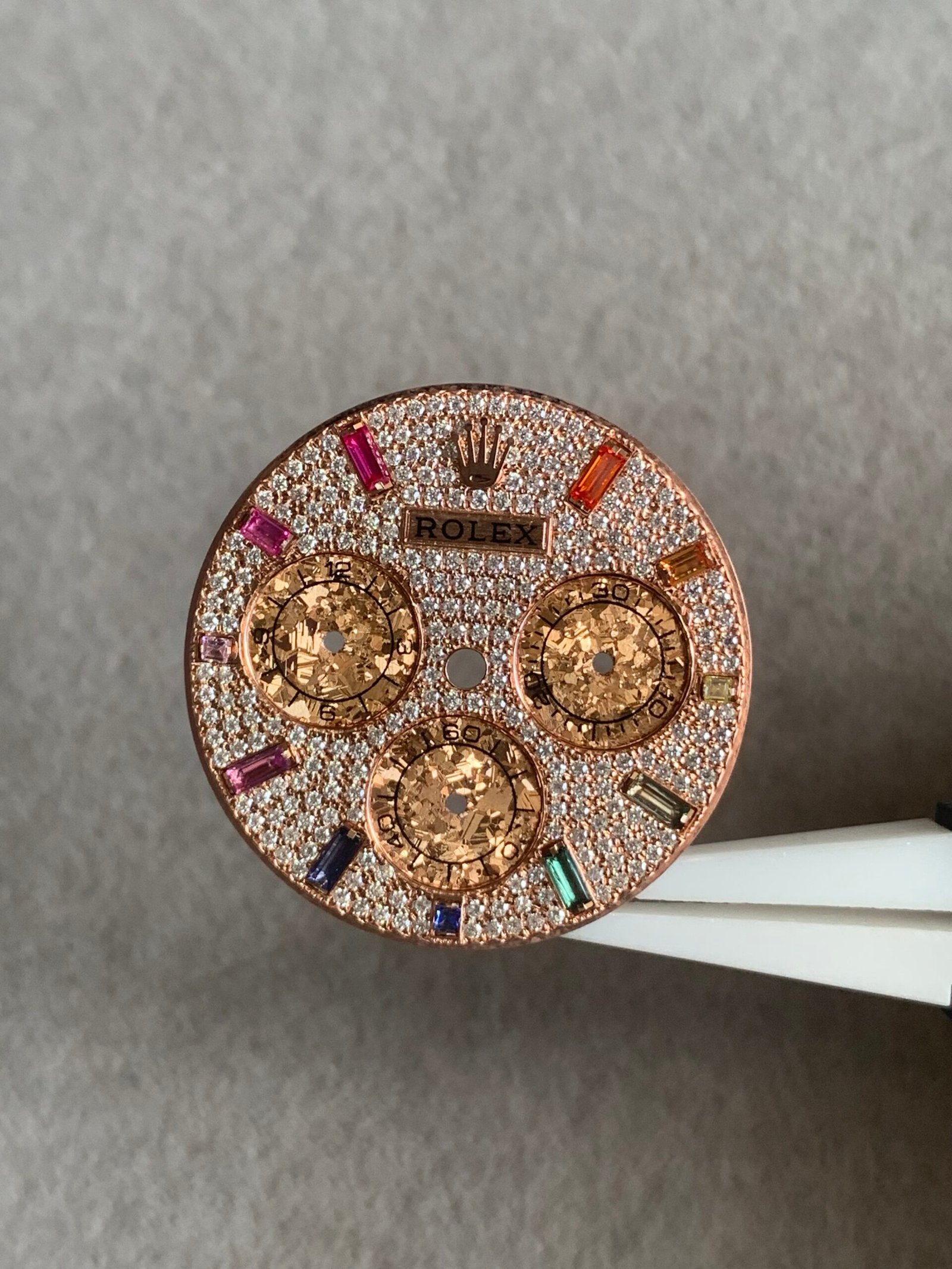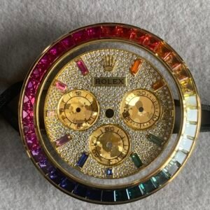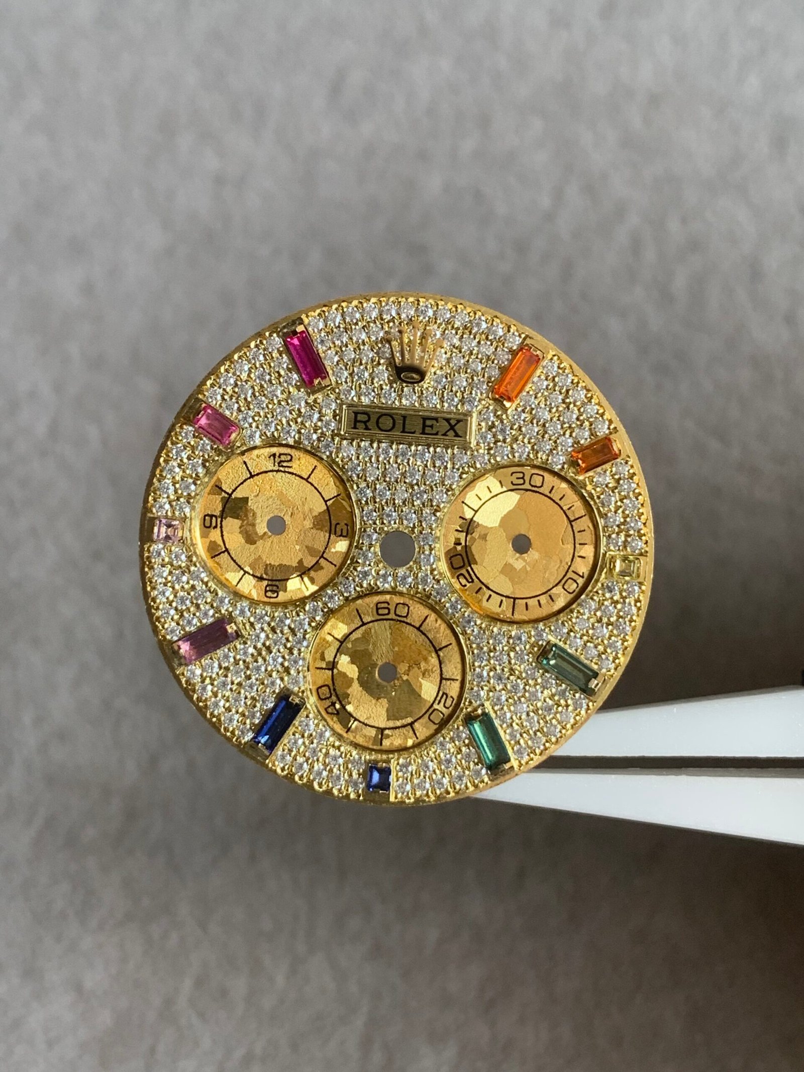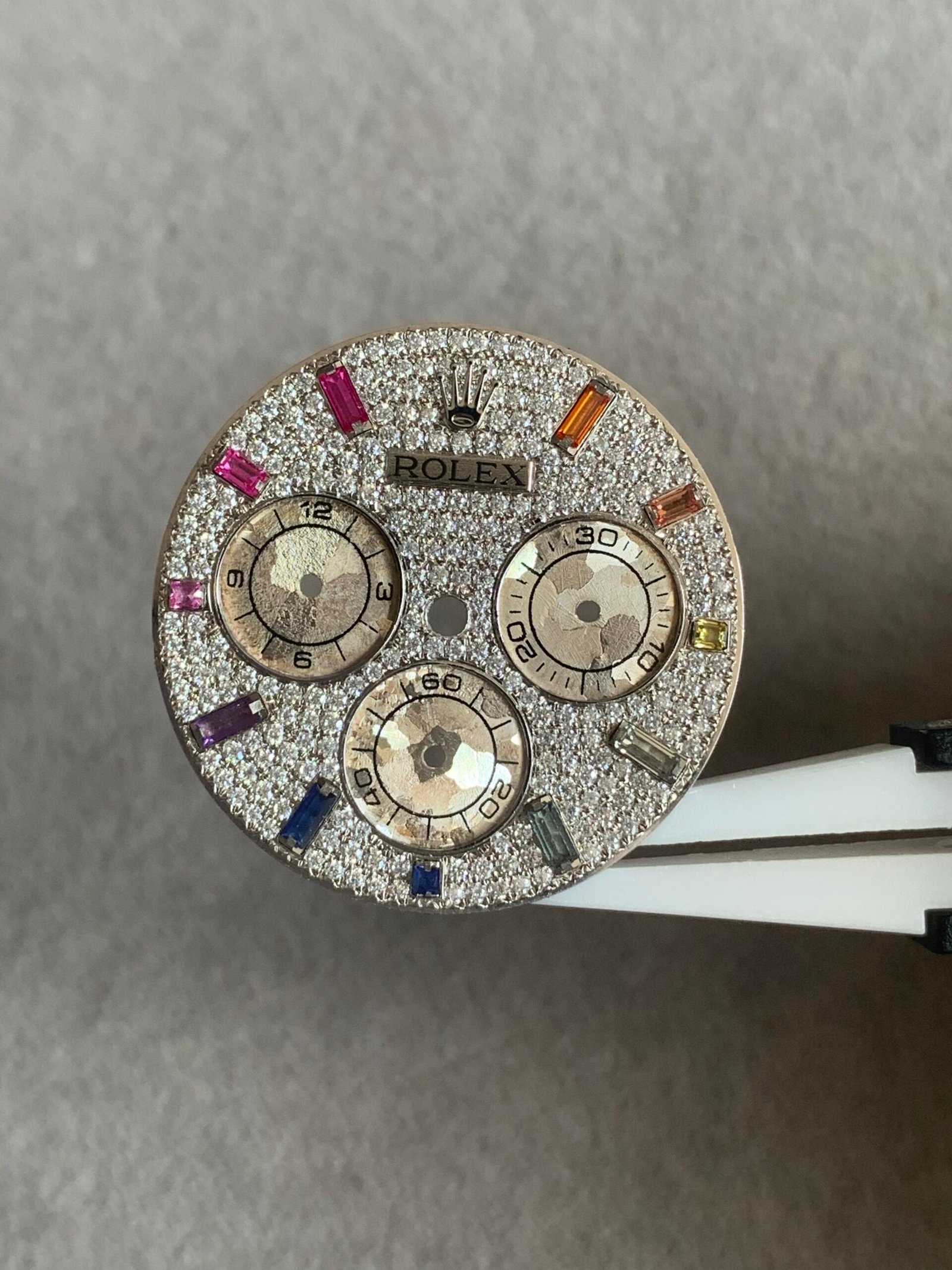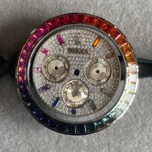 Rolex Rainbow Daytona Dial Set, Inlaid Rainbow Gemstone Bezel, Moissanite Dial, Hand-Inlaid 4130 Movement