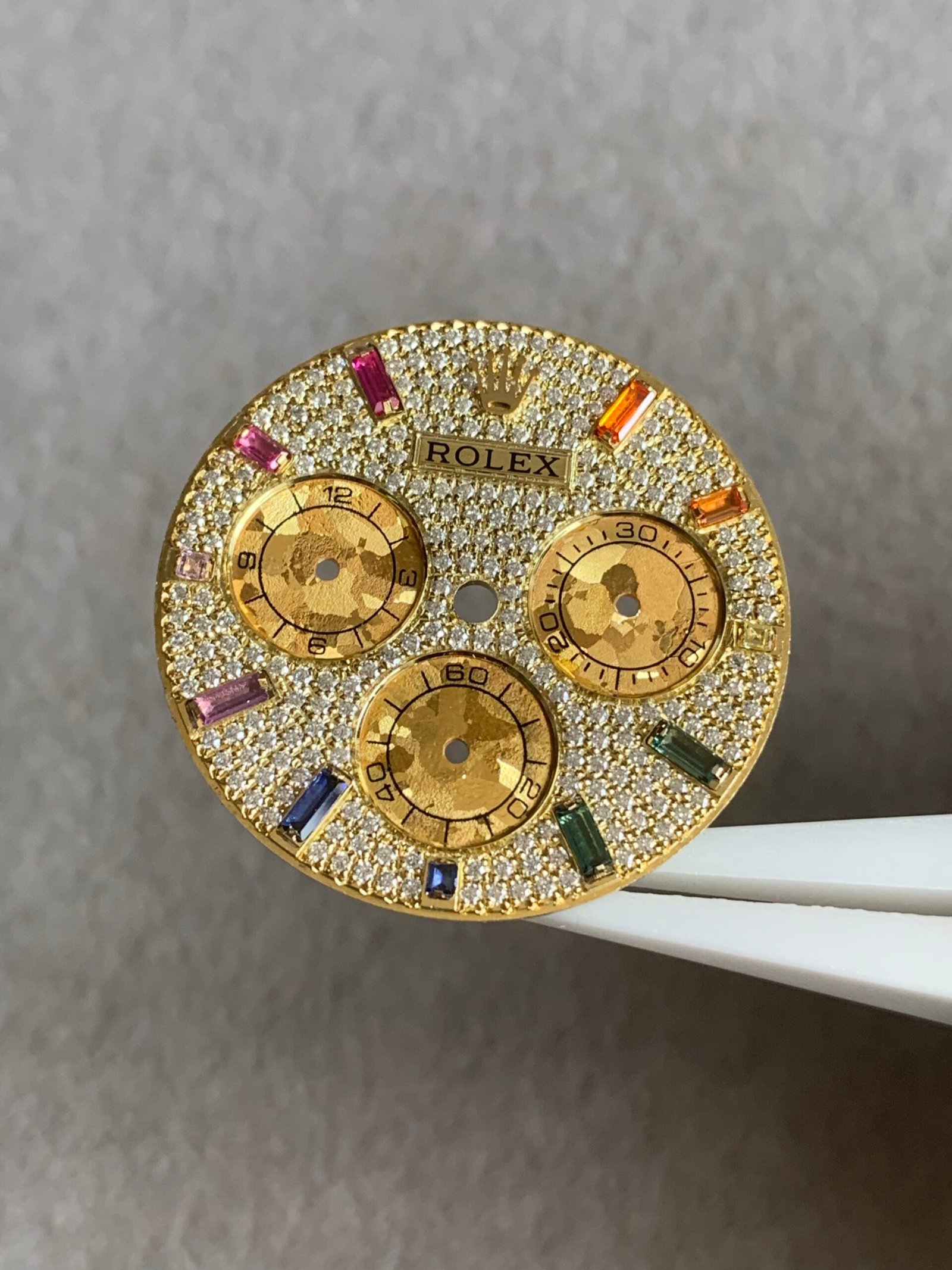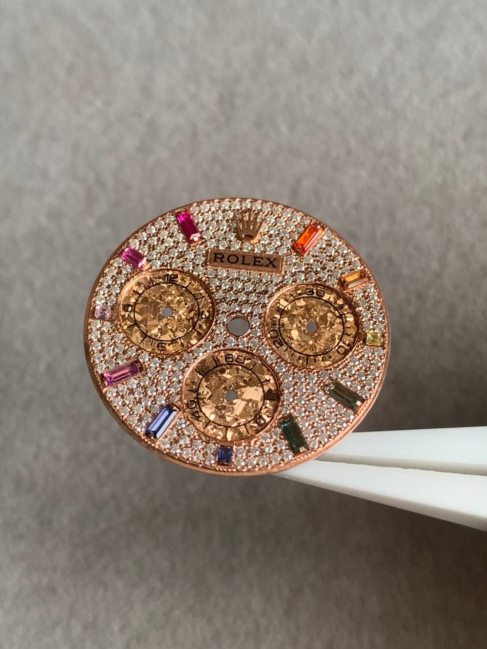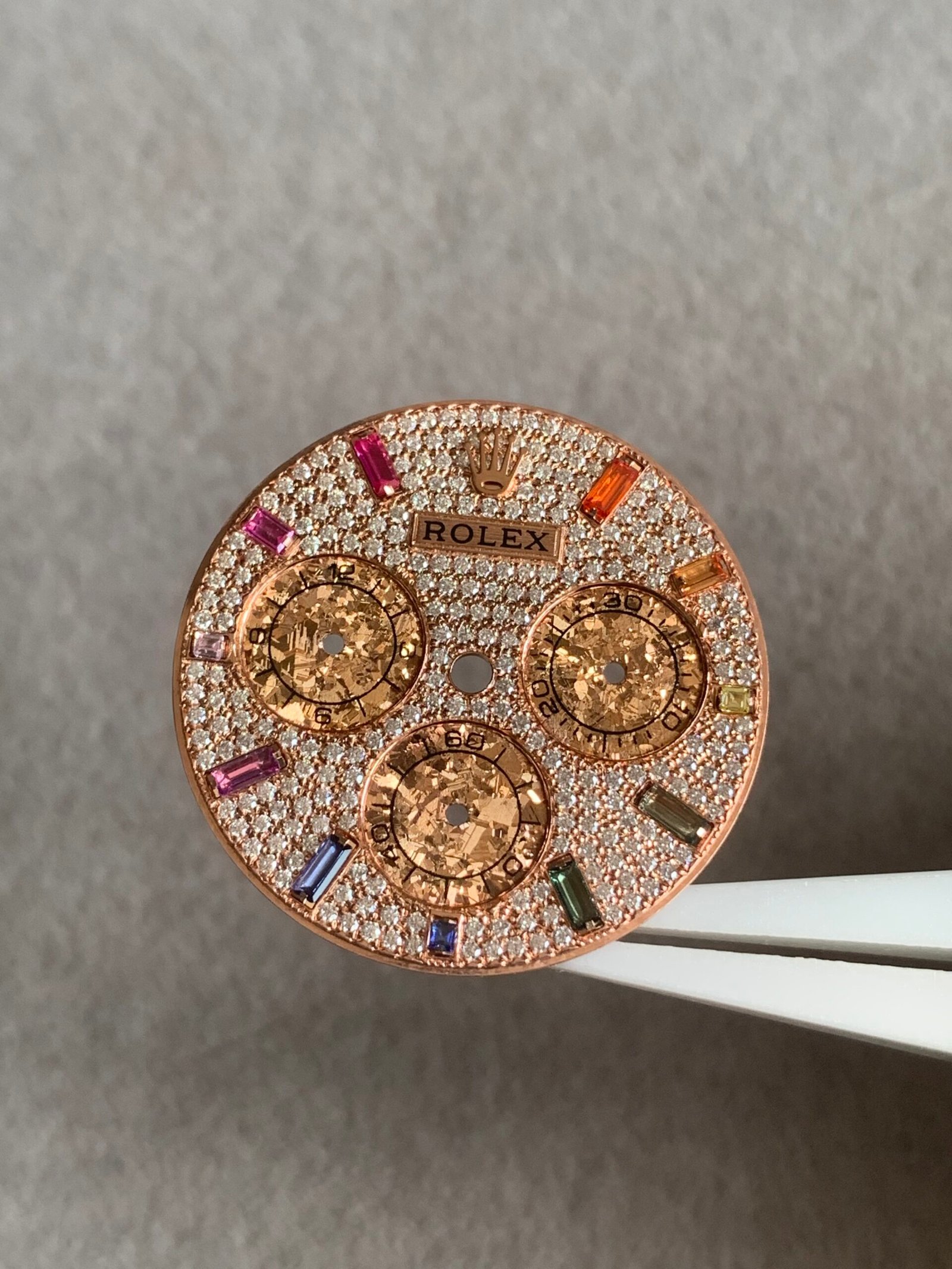 Rolex Rainbow Daytona Dial Set, Inlaid Rainbow Gemstone Bezel, Moissanite Dial, Hand-Inlaid 4130 Movement