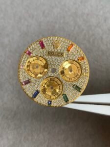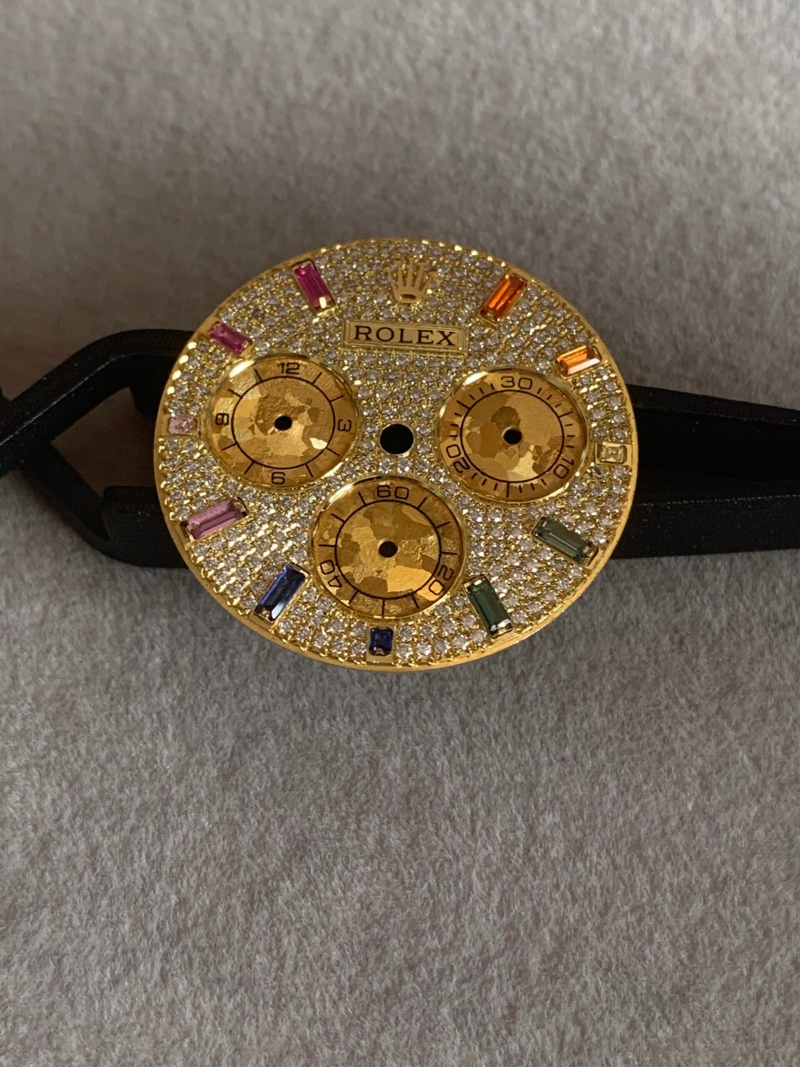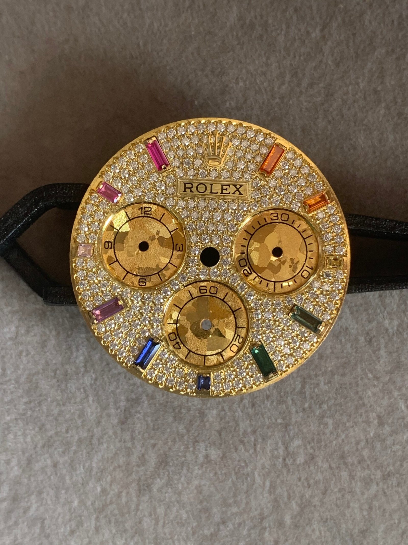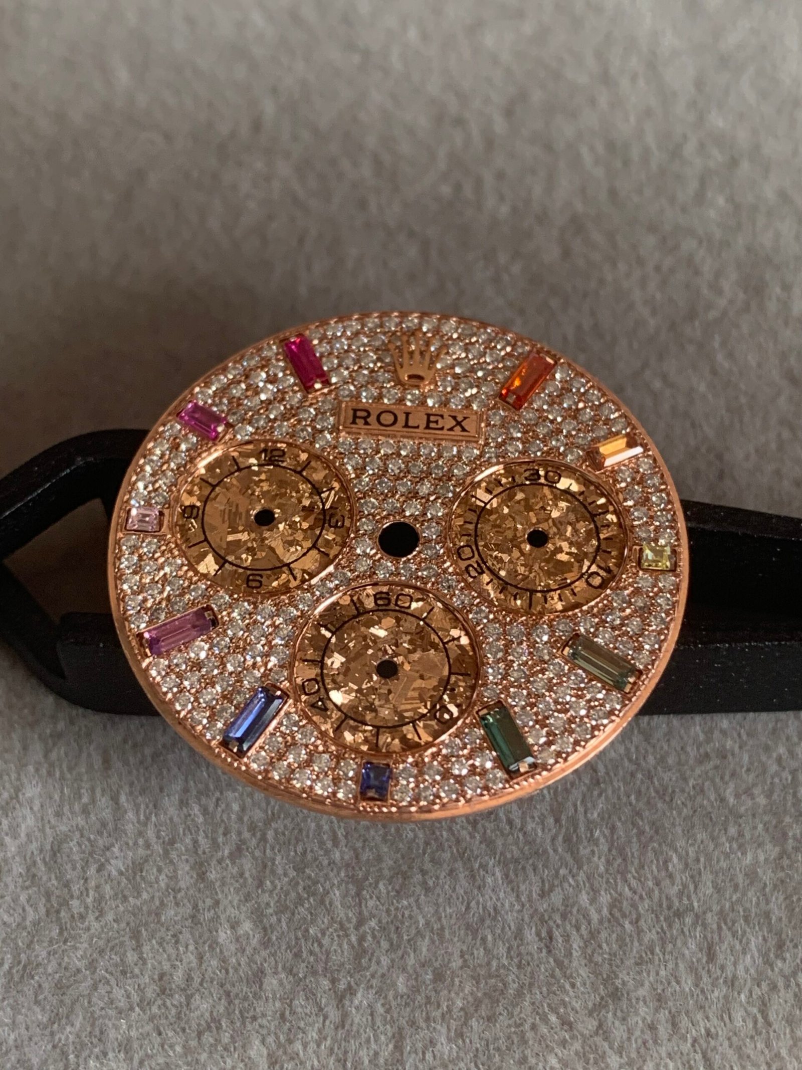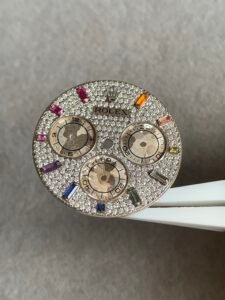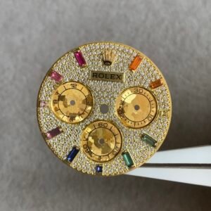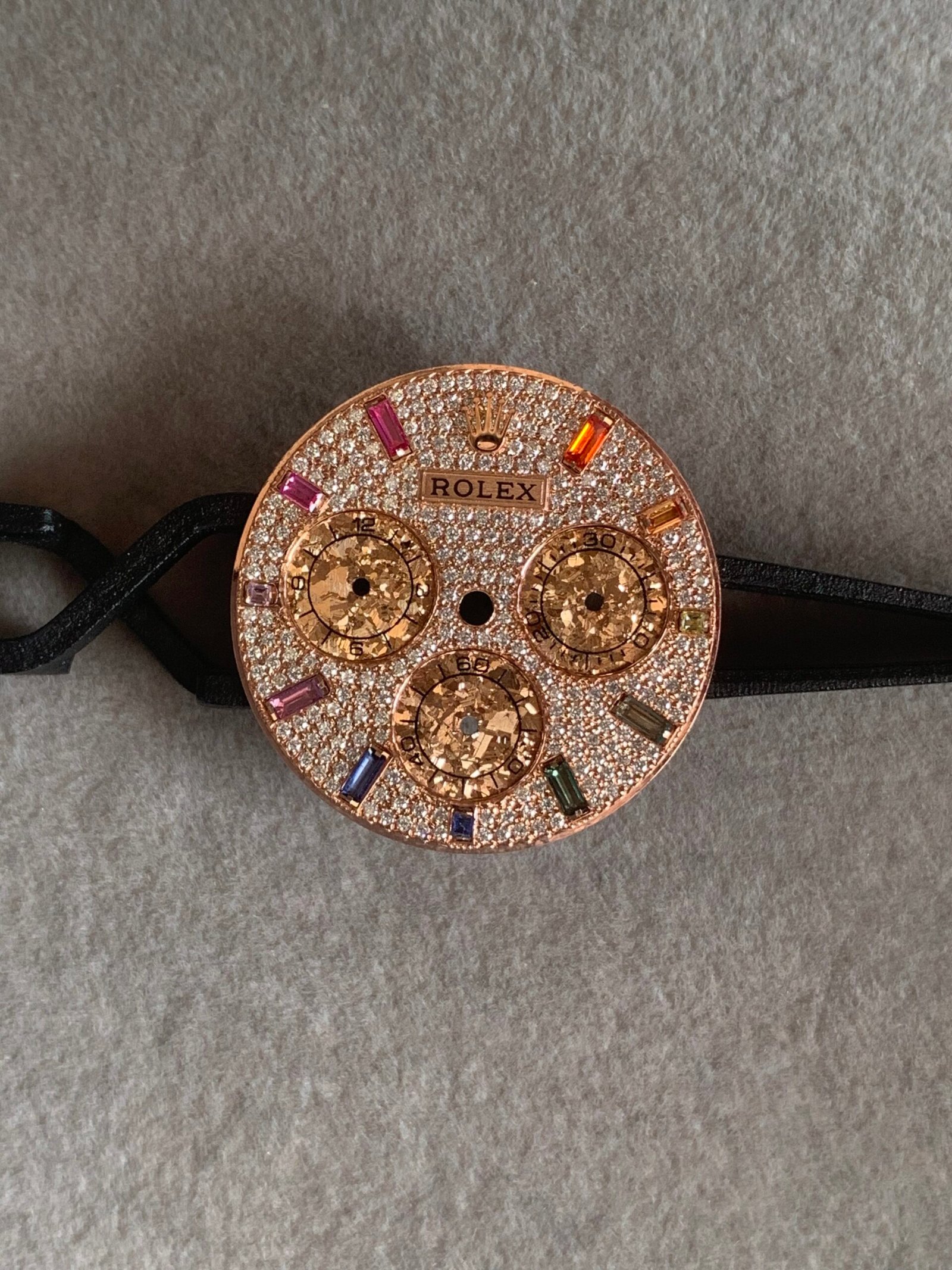 Rolex Rainbow Daytona Dial Set, Inlaid Rainbow Gemstone Bezel, Moissanite Dial, Hand-Inlaid 4130 Movement